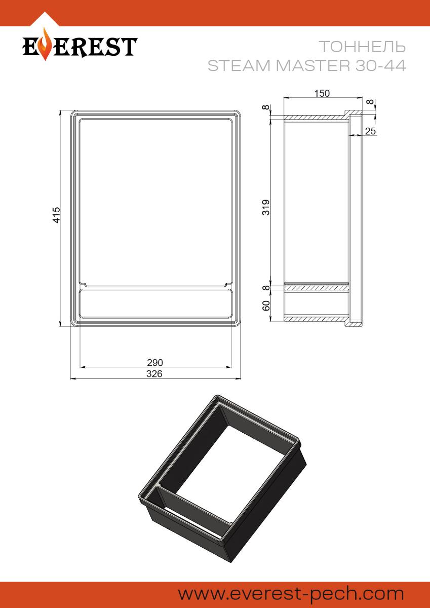 Чугунный топочный туннель Steam Master 30,38,44 используется для увеличения штатной длинны топочного тоннеля печей Steam Master 30,38,44 с топкой из чугуна на 150мм.