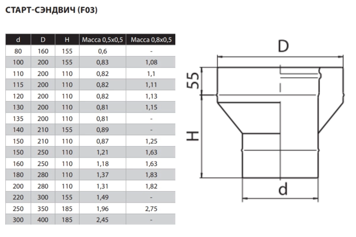 Старт-сэндвич Ferrum (430/0,8мм + нерж.) Ф115х200 мм – промежуточная деталь между одинарным элементом дымохода и элементом сэндвич дымохода. Внутренняя труба изготовлена из нержавеющей стали марки AISI 430 толщиной 0,8мм. Материал внешний трубы AISI 430 толщиной 0,5мм. Рабочий температурный режим до 600 °С.