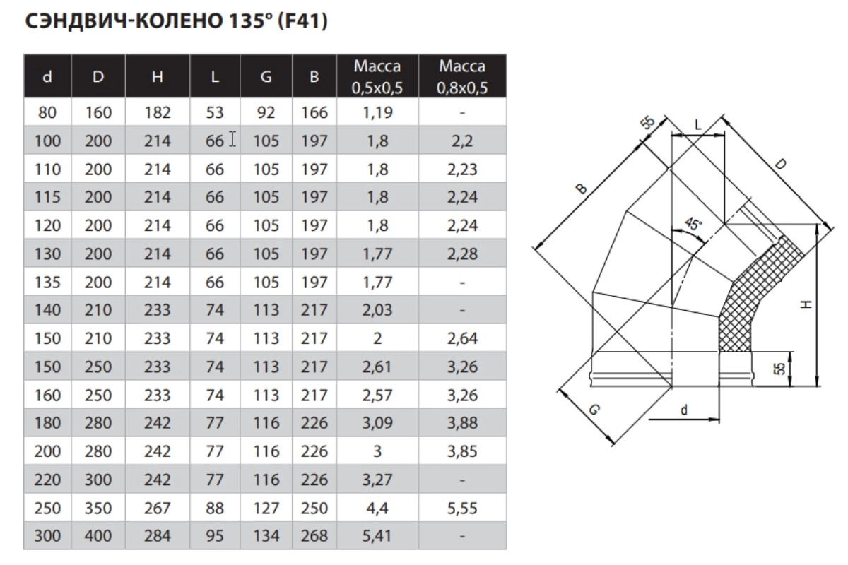 Сэндвич-колено Ferrum 135° (430/0,8мм + оц.) Ф120х200