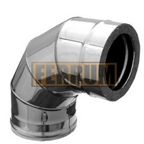 Сэндвич-колено Ferrum 90° 130мм. применяется для изменения направления канала двустенного дымохода. Плотность теплоизоляции 120 кг/м3. Внутренняя труба изготовлена из нержавеющей стали марки AISI 430 толщиной 0,8мм. Материал внешний трубы AISI 430 толщиной 0,5мм. Рабочий температурный режим до 600 °С.