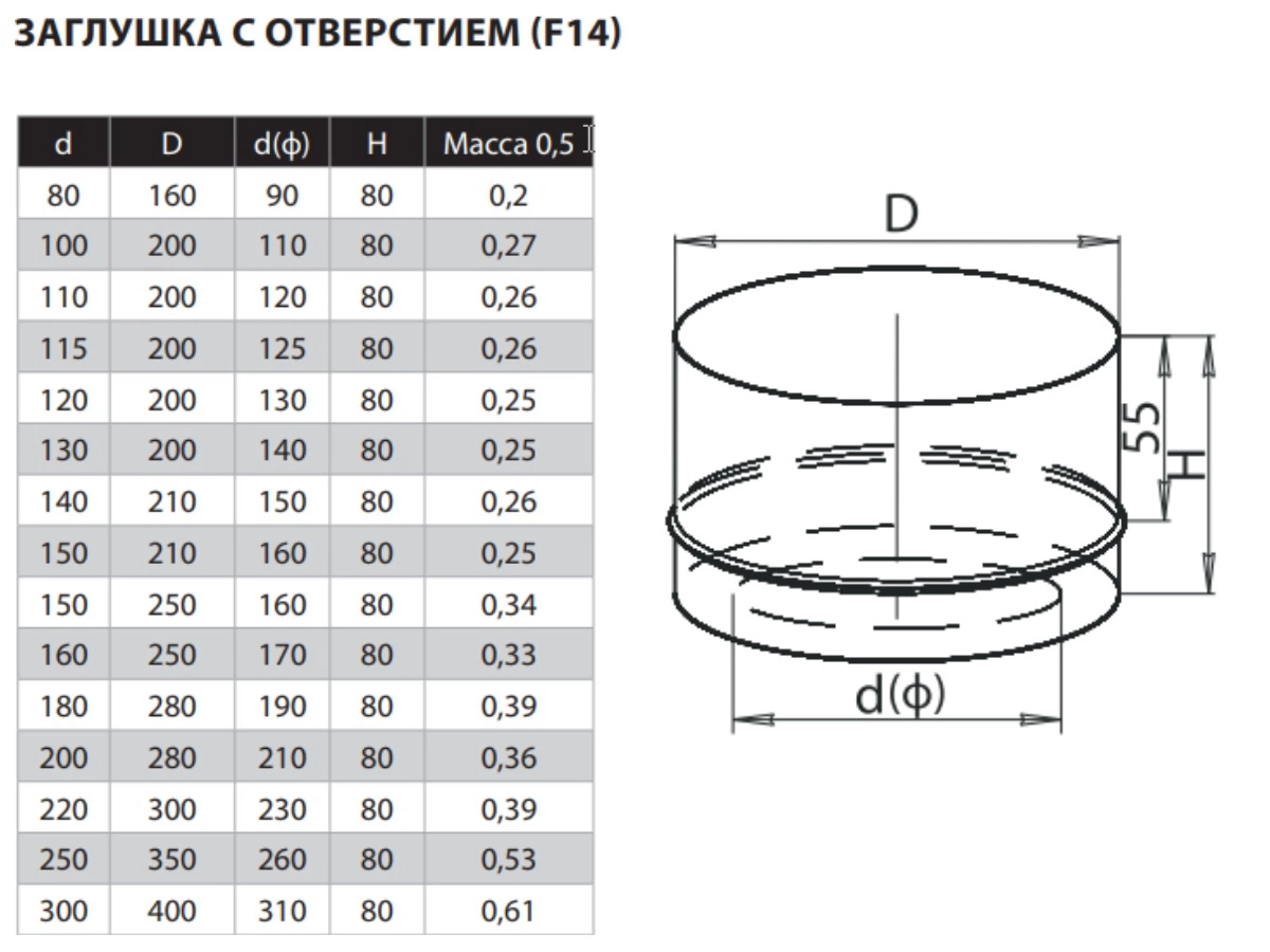 Заглушка с отверстием Ferrum нижняя 150х210мм служит для закрытия теплоизоляции сэндвич трубы. Материал AISI 430 толщиной 0,5мм.
