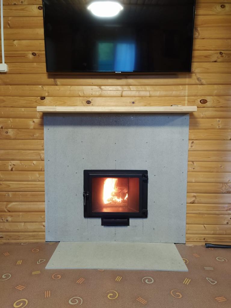 Монтаж чугунной банной печи Этна 18 Панорама, защита стены, пола, потолка от возгорания специализированными материалами, сборка и установка дымоходной системы.