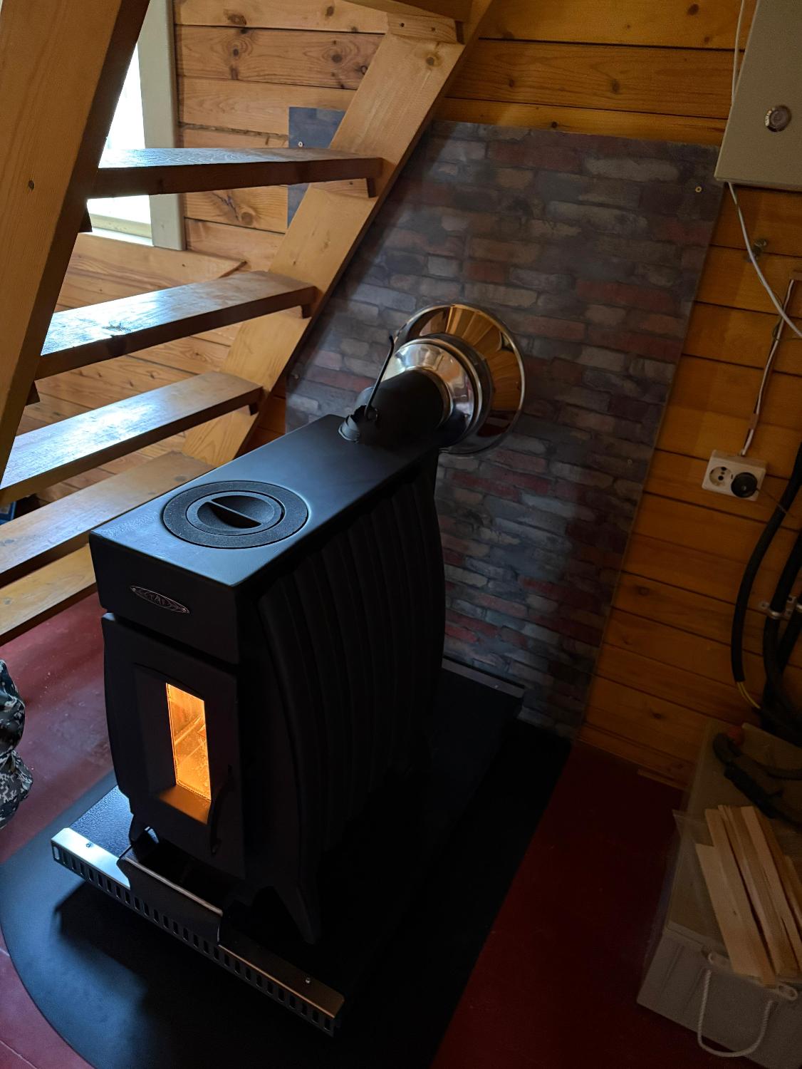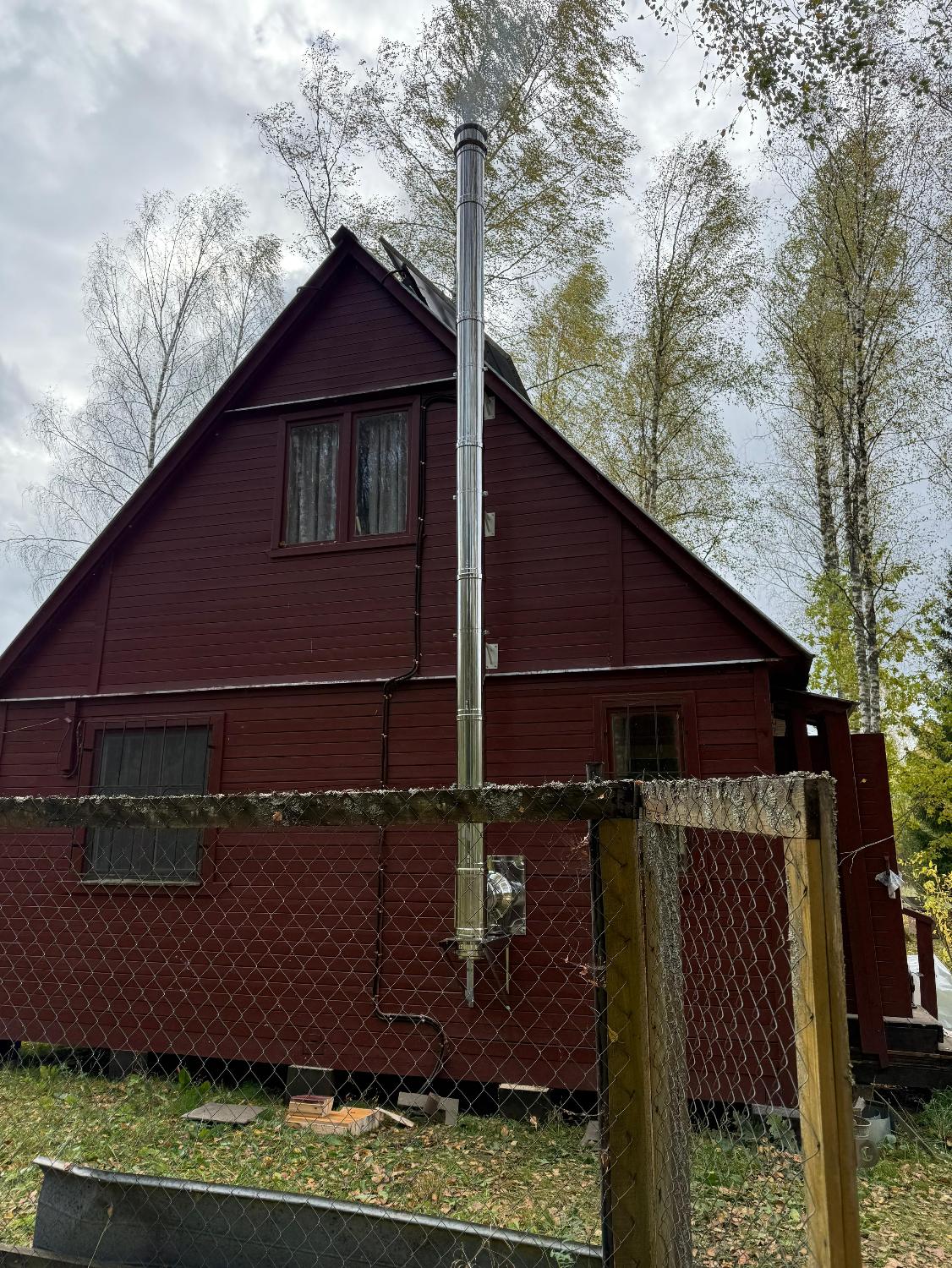 Установка и монтаж печи Огонь батарея 7 и системы дымоотведения в частном доме с выводом дымохода через стену.