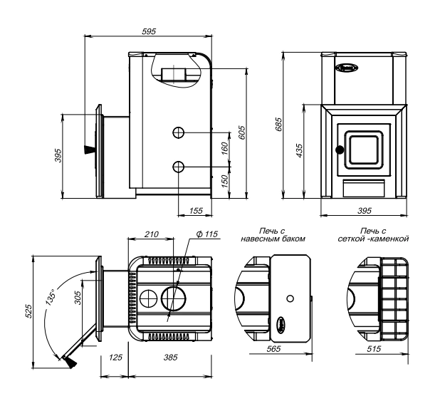 - Диаметр дымохода (мм) 115