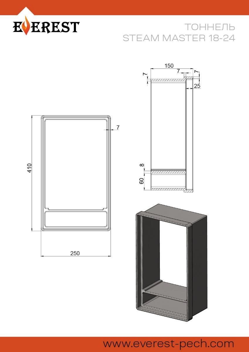Чугунный топочный туннель Steam Master 18,24 используется для увеличения штатной длинны топочного тоннеля печей Steam Master 18,24 с топкой из чугуна на 150мм.