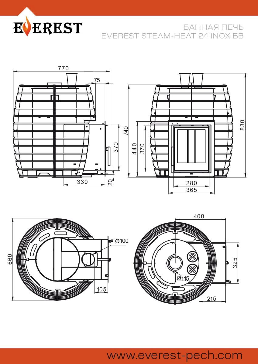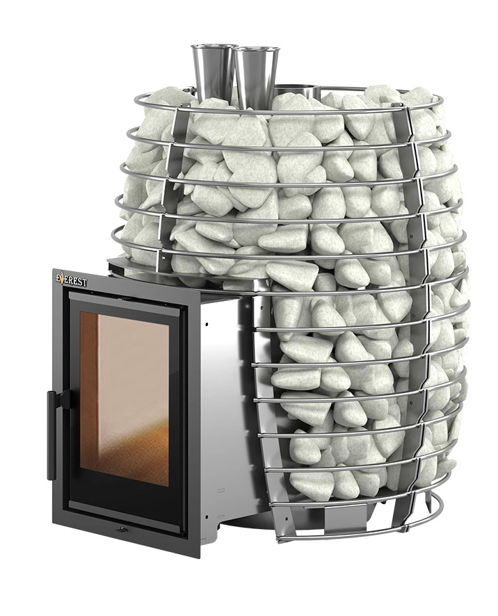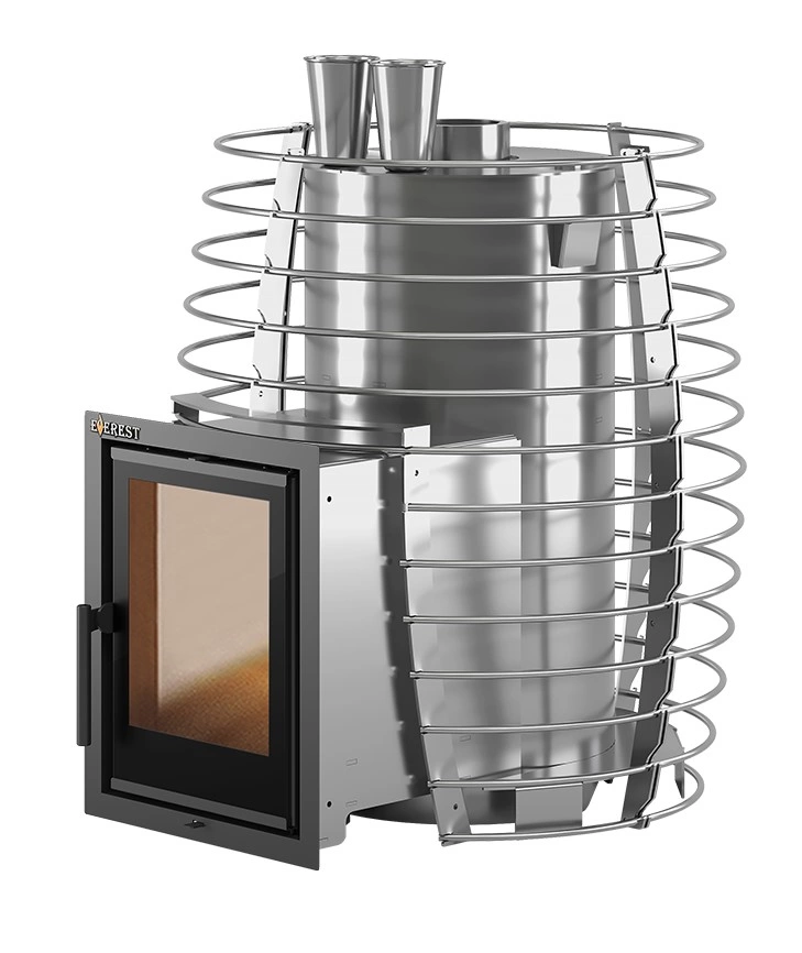 Печь Эверест Steam Heat 24 inox б/в для бани, из нержавеющей стали, с закрытой каменкой, на дровах.