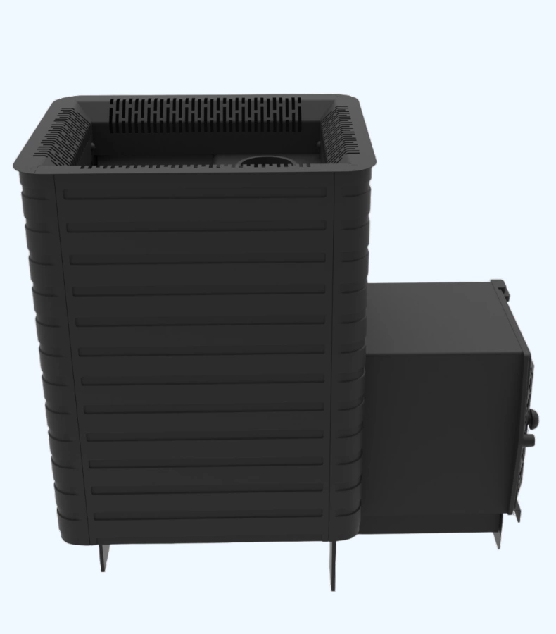 Конвектор покрашен черной термостойкой краской, рамка каменки из нержавеющей стали. Топка печи из стали толщиной 6мм. Дверка без стекла. Топочный тоннель с выносом 130мм.