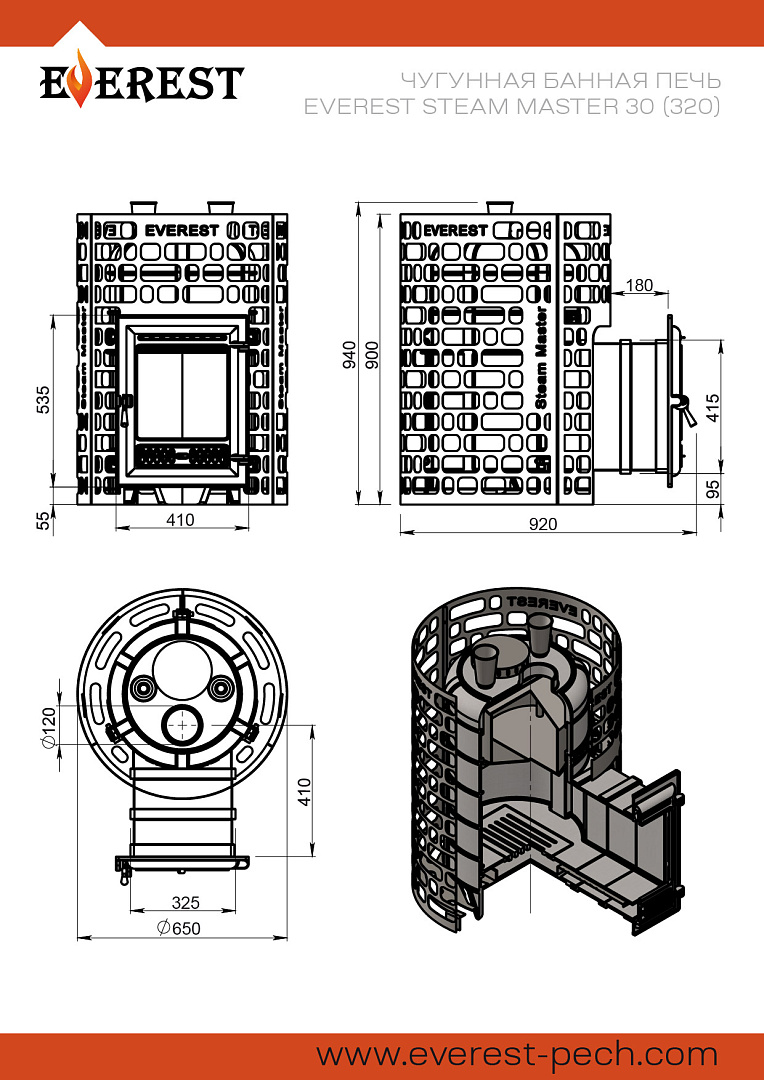 Печь Эверест Steam Master 30 (320) Чугун для бани купить в Москве
