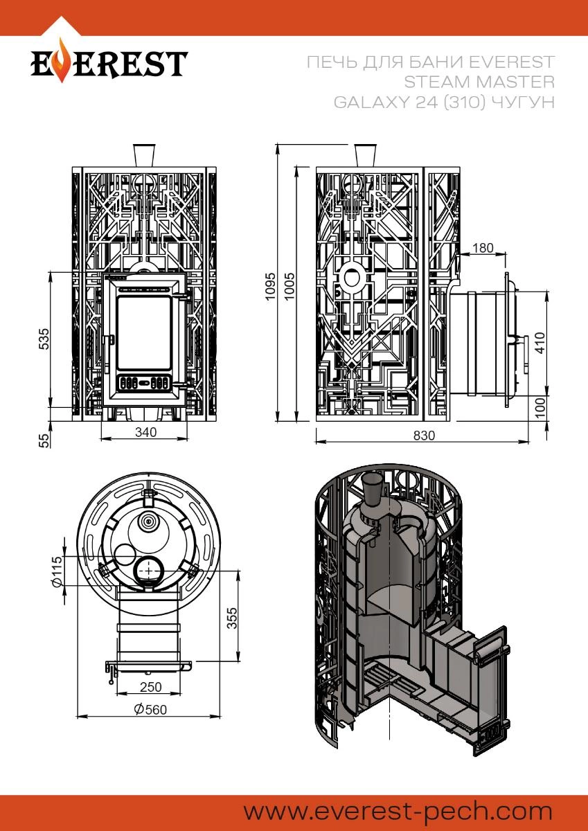 Печь Эверест Steam Master Galaxy 24 (310) Чугун Gold для бани, с закрытой каменкой, на дровах
