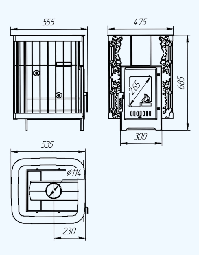 Топливом для печи служат сухие дрова. Максимальная длинна полена 400мм.