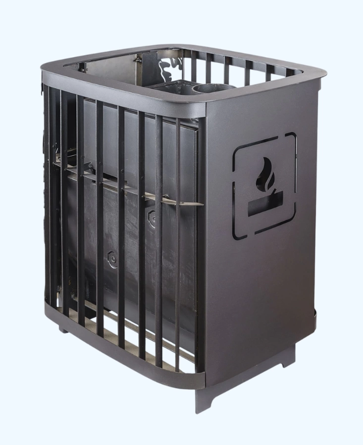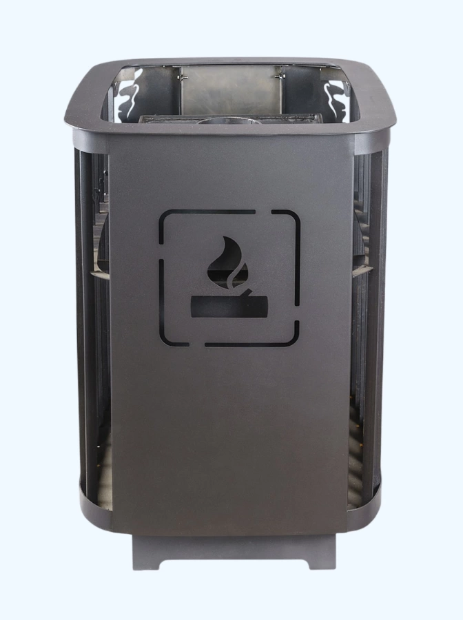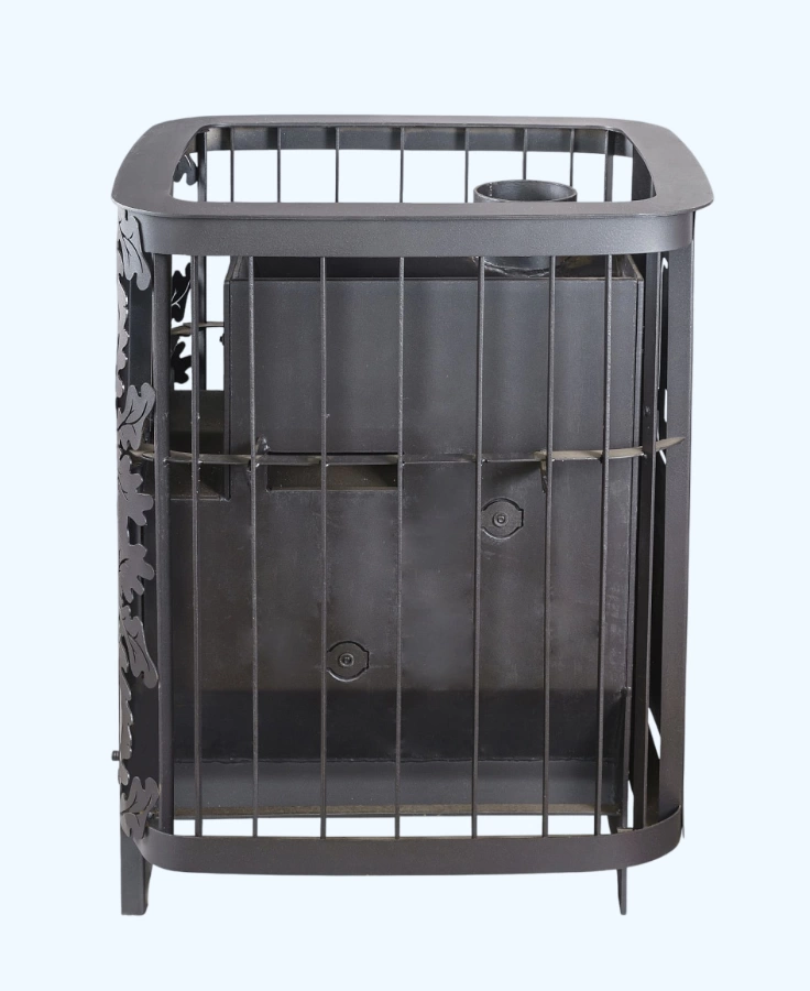 Варвара Каменка Мини (Сталь, Укороченная топка) - это печь с сетчатым конвектором. Конвектор вмещает много камней, которые аккумулируют тепло и снижают поступления в парилку сухого нагретого воздуха. Верхняя открытая каменка позволяет нагревать камни для получения пара.