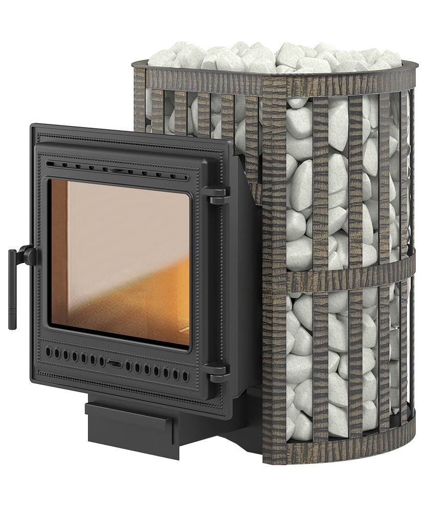 Легенда Ковка 28 (505) — это банная дровяная печь для парильных помещений с объемом от 16 до 30 м3. Топка печи, отбойник пламени, колосниковая решетка и дверца топки изготовлены из чугуна (ГОСТ 1412-85). Толщина топки 8мм. Печь имеет выносной канал для загрузки дров в топку. Такая конструкция позволяет топить печь из прилегающего к парилки помещения. Длинна выносного канала для загрузки топлива 220мм. Выносной канал изготовлен из стали. Топка печи Легенда Ковка 28 (205) по периметру окружена конвектором. Конвектор изготовлен из стальных кованых полос. Пространство между конвектором и топкой заполняется банным камнем. Камни аккумулируют тепло, снижают тепловое излечение топки и позволяют получать пар. Топочная дверка печи 500х500мм. Размер стекла 364х280мм.