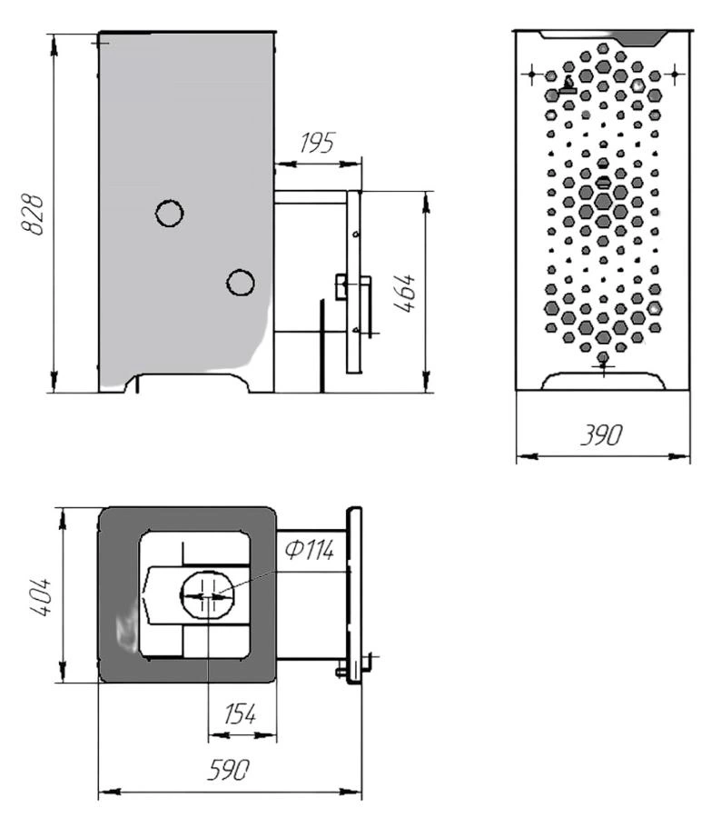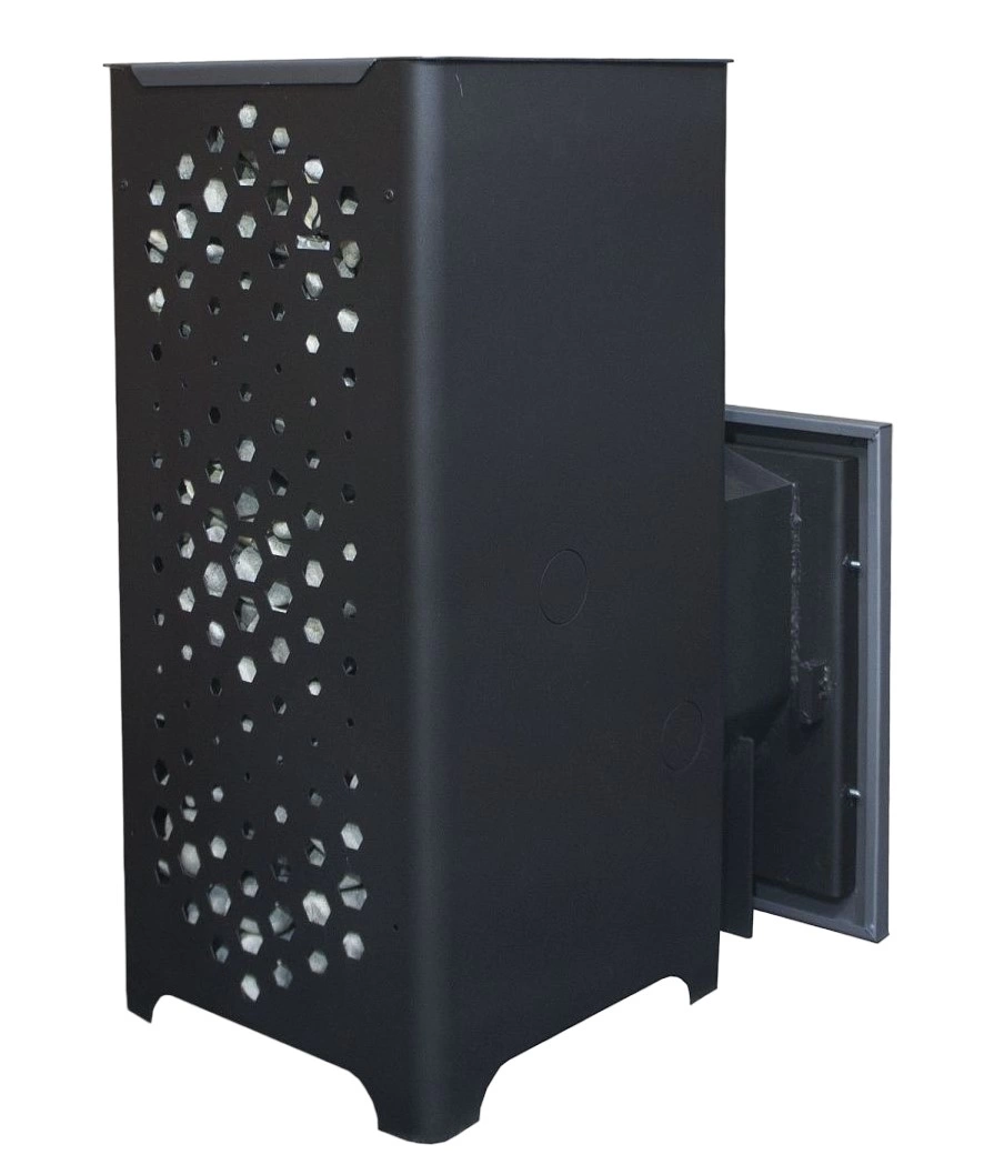 Печь дополнительно комплектуется Боксом для увеличения каменки, Модулем закрытой каменки, встраиваемым в топку Теплообменником. Металлическую пластину, в топочной дверки, можно заменить термостойким стеклом (в комплект поставки не входит).