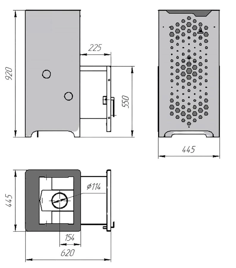 Топка печи изготовлена из стали толщиной 3мм. Свод топки печи изготовлен из стали толщиной 6мм и оборудован экраном защищающим его от прогорания.