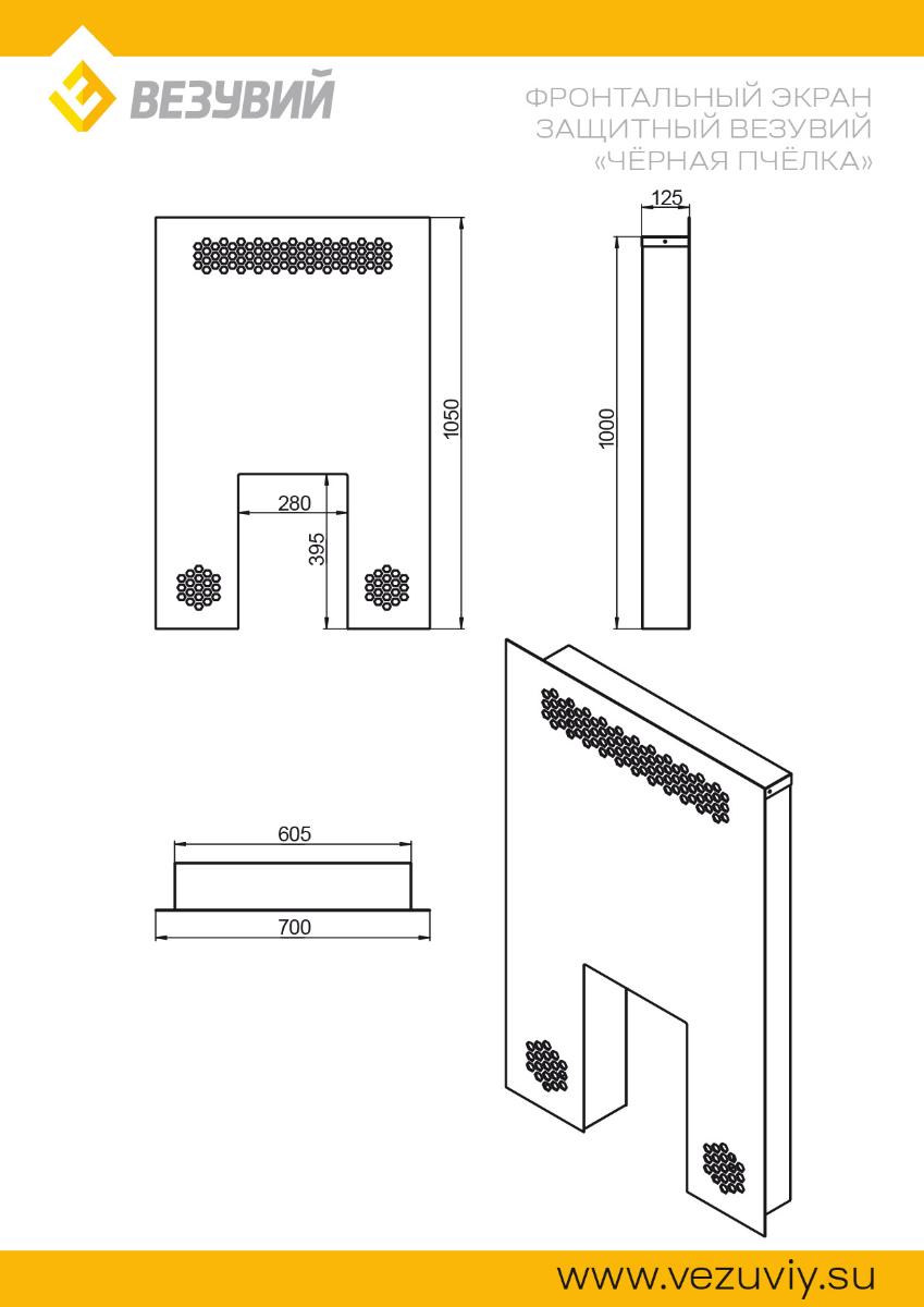 Фронтальный экран защитный Везувий Чёрная Пчёлка применяется при установки банных печей Везувий Черная пчёлка всех модификаций, для безопасного провода канала закладки дров через стену.
