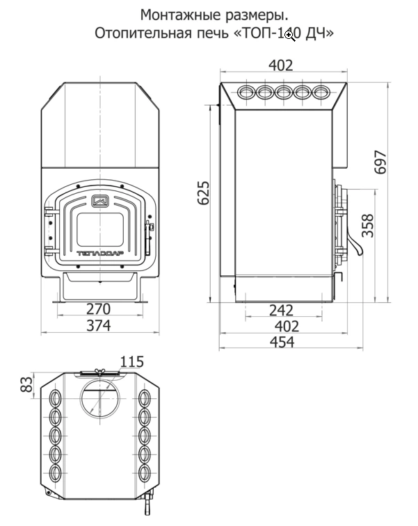 Заказать установку и монтаж печи Теплодар ТОП-модель 140 со стальной дверцей можно по телефону +7(495)223-04-82 или +7(905)748-19-40.