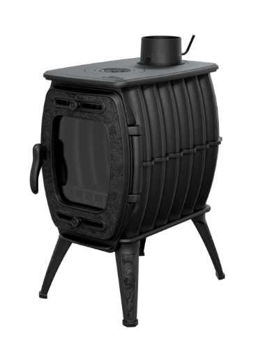 Печь-камин Прометалл Бахта II - цвет черный – это чугунная отопительно-варочная печь. Корпус печи изготовлен из термостойкого чугуна марки ЧХ-1. На дне топки чугунная колосниковая решетка. Печь может работать в режиме интенсивного горения и в режиме длительного горения. Для изменения интенсивности и длительности горения топлива печь имеет регуляторы подачи воздуха в верхнюю часть топки, нижнюю часть топки и в зону колосниковой решетки, а так же шибер, встроенный в патрубок для подключения дымохода. Топочная дверка печи с термостойким стеклом. Для того, чтобы стекло оставалось чистым, регулятор подачи (дефлектор) воздуха в верхнюю часть топки, должен быть открыт. С внешней стороны печь отгрунтована и покрыта черной термостойкой краской. Патрубок дымоходы, штатно, расположен на задней стенки, в горизонтальном положении. При необходимости переставляется на верхнюю поверхность в горизонтальное положение. Печь имеет варочную поверхность с одной конфоркой.