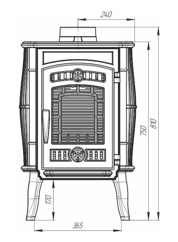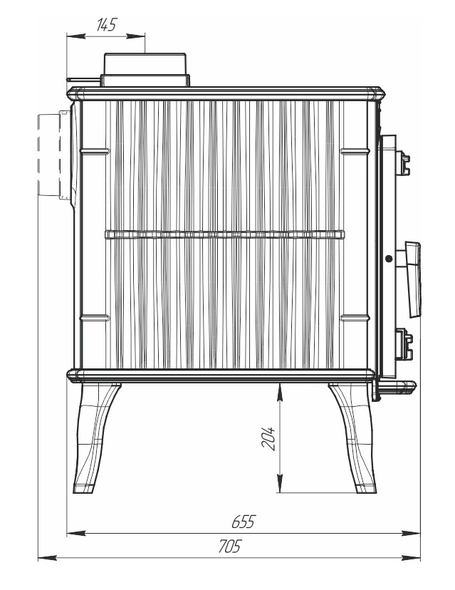 Маэстро – это чугунная отопительно-варочная печь от компании Прометалл. Корпус печи изготовлен из термостойкого чугуна марки ЧХ-1. Толщина стенок корпуса 8-12 мм, толщины дна корпуса 12-16мм. Печь может работать в режиме интенсивного горения и в режиме длительного горения. Для изменения интенсивности и длительности горения топлива печь имеет регуляторы подачи воздуха в верхнюю часть топки и нижнюю часть топки, а так же шибер, встроенный в патрубок для подключения дымохода. Топочная дверка печи с термостойким стеклом. Для того, чтобы стекло оставалось чистым, регулятор подачи (дефлектор) воздуха в верхнюю часть топки, должен быть открыт. С внешней стороны печь покрыто слоем грунтовки и покрыта черной термостойкой краской. Патрубок дымоходы, штатно, расположен на задней стенки, в горизонтальном положении. При необходимости переставляется на верхнюю поверхность в горизонтальное положение. Печь имеет варочную поверхность с одной конфоркой.