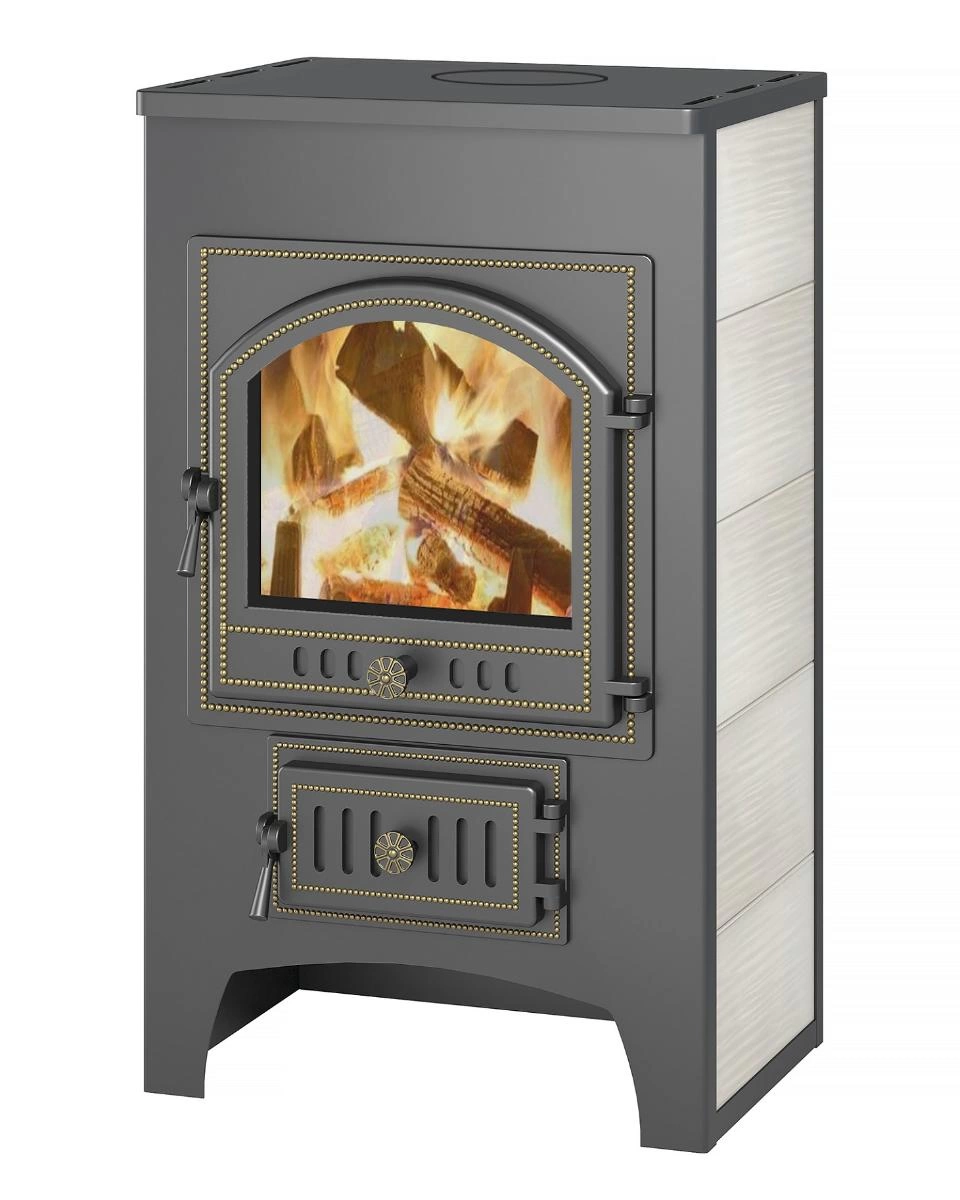 Печь-камин Везувий ПК-01 (205) бежевая для дома и дачи стальная на дровах