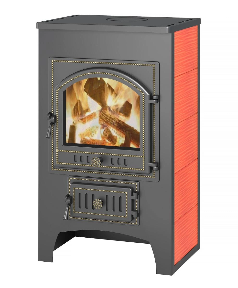 Печь-камин Везувий ПК-01 (205) красная для дома и дачи стальная на дровах