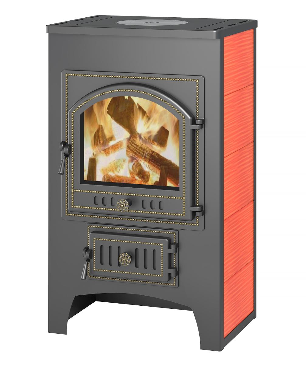 Печь-камин Везувий ПК-01 (205) с плитой цвет красный для дома и дачи стальная на дровах