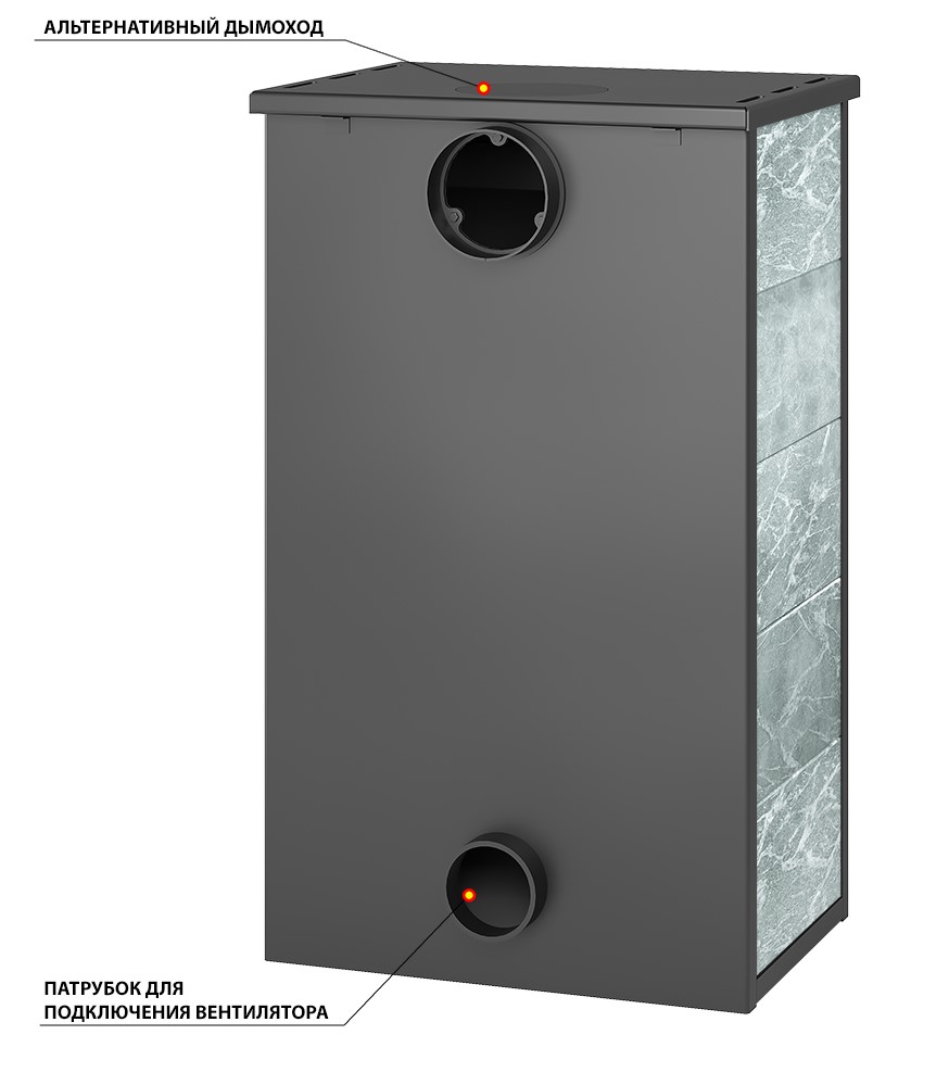 Печь-камин Везувий ПК-01 (205) талькохлорит - это отопительная печь-камин для отопления помещений с объемом до 200 м3.Топка печи-камина Везувий ПК-01 (205) талькохлорит стальная. Дно топки, боковые стороны и задняя стенка закрыты шамотным кирпичом. Отбойник пламени из нержавеющей стали толщиной 2 мм. Топочная дверка и дверка зольного ящика чугунные. Топочная дверка с уплотнением из керамического шнура, размер стекла в дверки 317х365 мм. Поддувальная дверка с механизмом регулировки подачи воздуха в топку. С боковых сторон печь-камин имеет конвектора со вставками из натурального камня. В нижней части задней стенки расположен патрубок для установки вентилятора. Вентилятор продувает воздух между топкой и конвекторами, ускоряя нагрев помещения. Вентилятор приобретается отдельно.