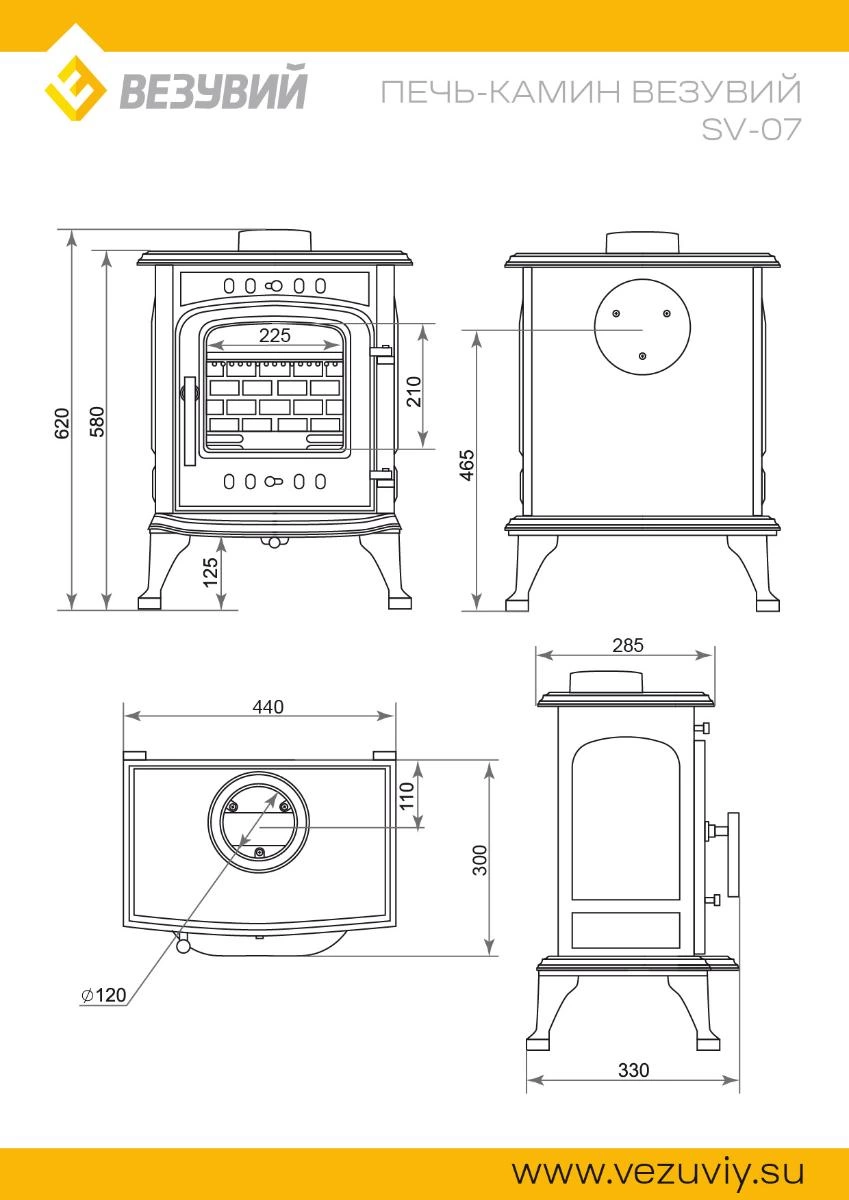 Печь-камин Везувий SV-07 Антрацит: Не большая чугунная печь-камин, для помещений, объёмом до 140м3.