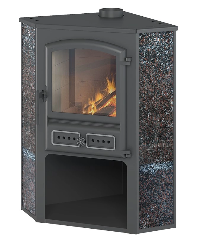 Печь-камин Этна (БКД) угловой Амфиболит для дома и дачи стальная на дровах