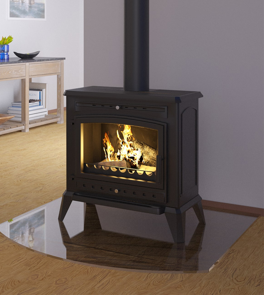 Печь - камин Everest F12: Компактная современная модель, с большим стеклом для отопления дома и дачи.