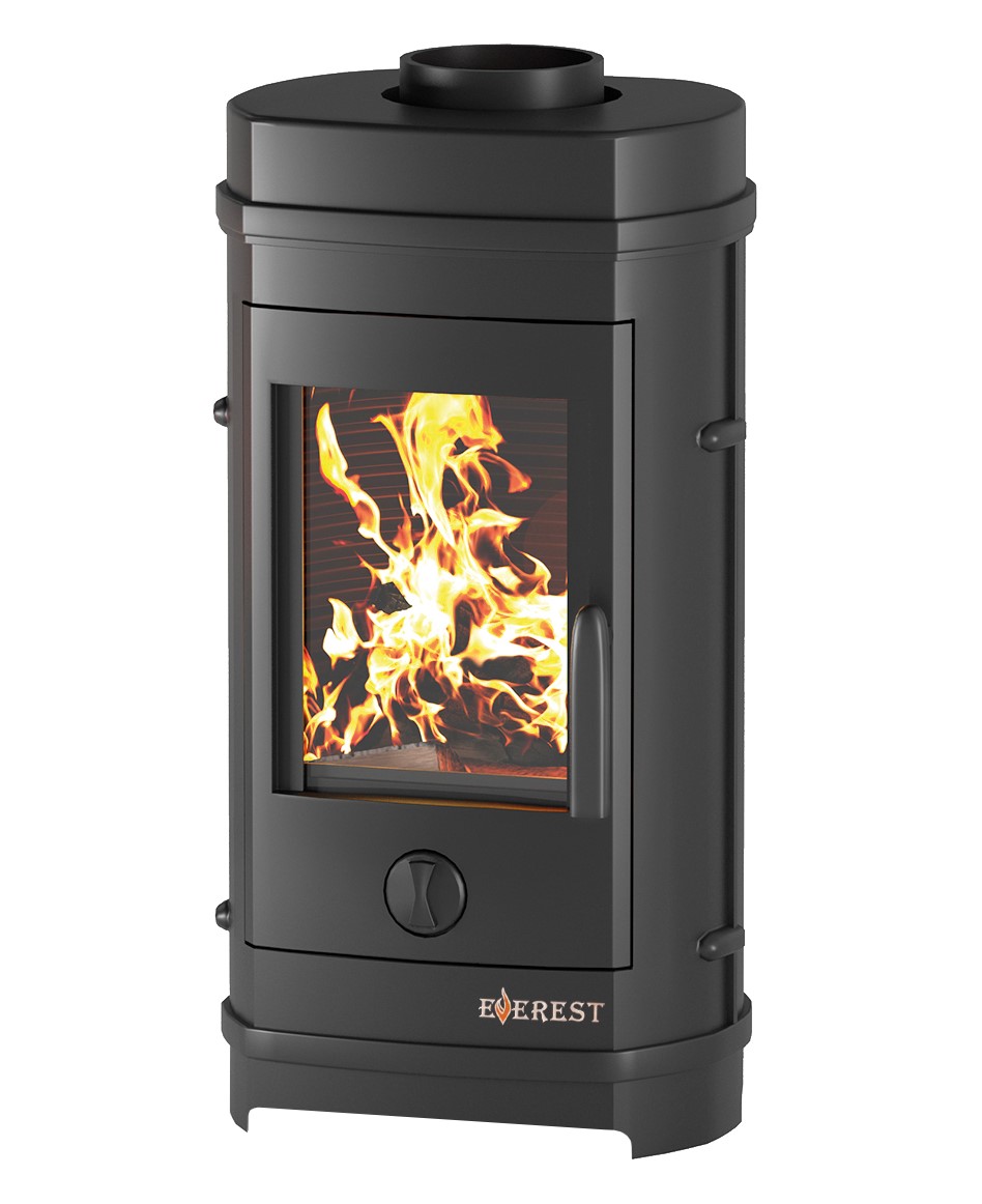 Конструкция: Everest F7 состоит из вытянутой вверх чугунной топки на небольших ножках, закрывающийся чугунной дверкой с обзорным стеклом и системой "Чистое стекло". Горение дров происходит на колосниковой решётки, под колосниковой решёткой установлен зольный ящик. Everest F7 имеет нижнюю подачу воздуха, через колосниковую решётку и верхнюю, через отверстия над топочной дверкой. Такая конструкция обеспечивает более полное сгорание дров и препятствует налипанию сажи на стекло. Топливо: Печь - камин Everest F7 топится сухими дровами или древесными брикетами. Особенности: Everest F7 — баланс габаритов и мощности, надёжности и эффективности для отопления не большого дома и создания атмосферы уюта и стабильности.