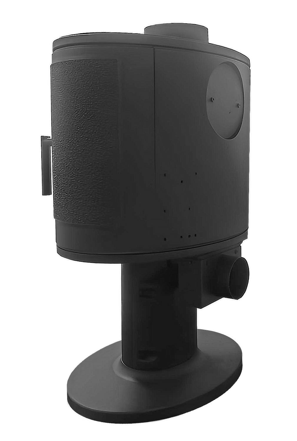 Конструкция: Печь-камин Everest S9 состоит из вытянутой вверх округлой чугунной топки на колонне-опоре, закрывающийся чугунной дверкой с обзорным стеклом и системой "Чистое стекло". Горение дров происходит на колосниковой решётки, под колосниковой решёткой установлен зольный ящик. Everest S9 имеет нижнюю подачу воздуха, через колосниковую решётку и верхнюю, через отверстия на задней стенки топки и отбойника пламени. Everest S9 снабжён патрубком для подключения воздуховода, для забора воздуха, необходимого для горения дров, с улицы. Такая конструкция обеспечивает более полное сгорание дров и повышает КПД печи-камина и не выжигает кислород из помещения. Топливо: Печь - камин Everest S9 топится сухими дровами или древесными брикетами. Особенности: Everest S9 — эллиптическая форма на опоре, гармонично вписывающиеся в любой интерьер, надёжности и высокий КПД.