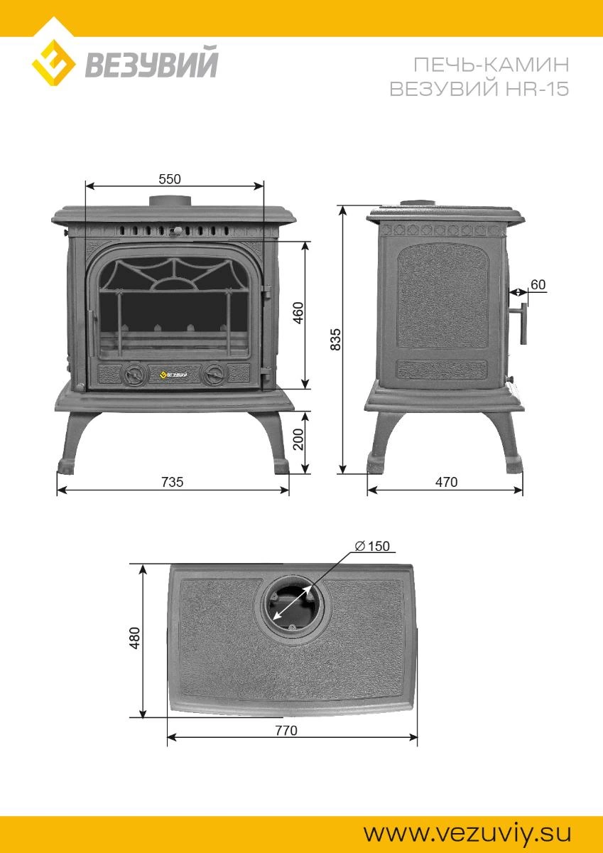 Печь-камин Везувий HR-15 изготовлена из качественного жаростойкого чугуна толщиной стенок 6–8 мм и рассчитана на обогрев помещений объемом до 300 м³.Двухслойные чугунные стенки Везувий HR-15, эффектный внешний вид и 208 кг чугуна создают для вас незабываемые эмоции тепла и уюта в вашем пространстве.